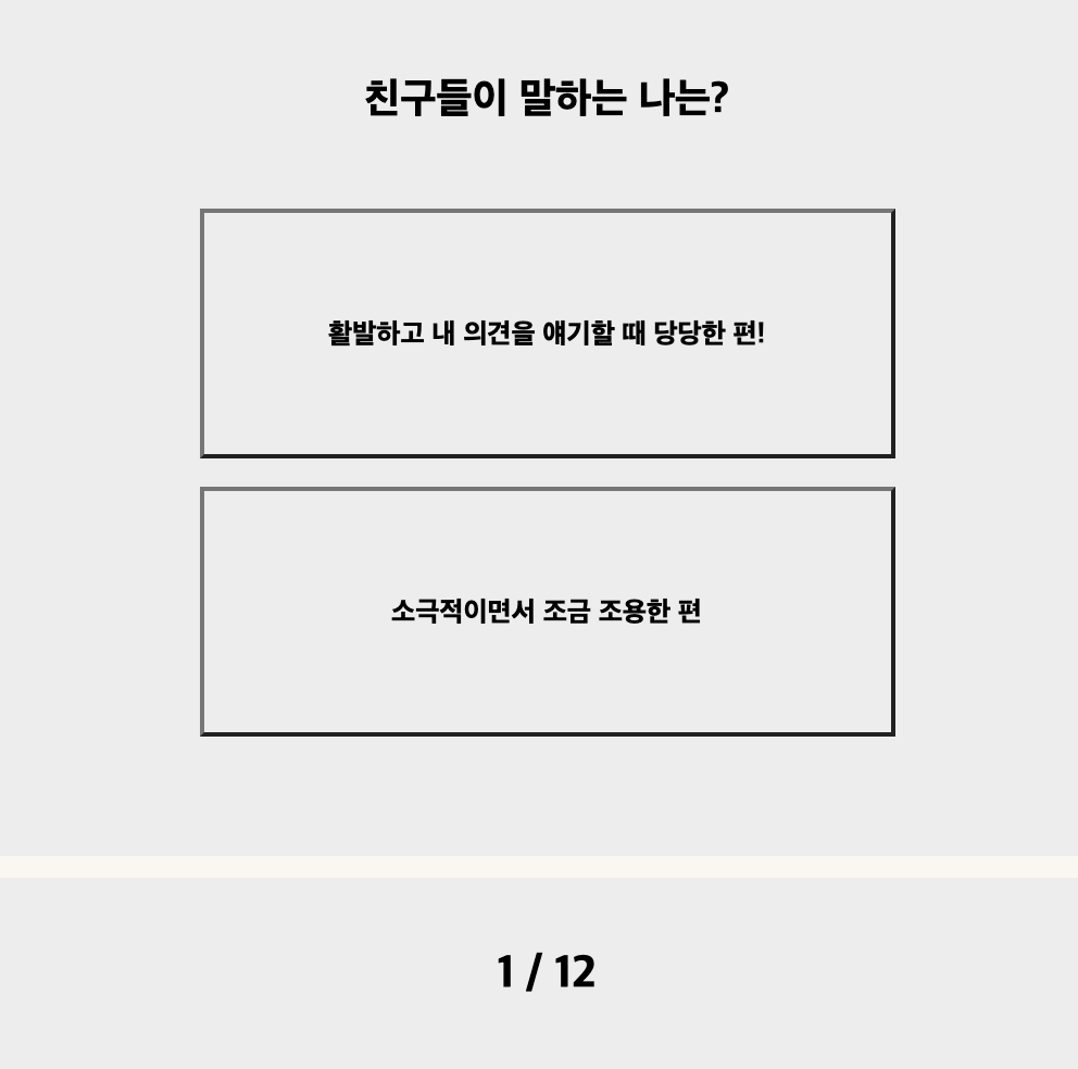 성격 테스트라 하면 외향적인지 내향적인지 가르는 것부터 시작해야죠! 1, 2번 질문은 모두 그런 종류의 질문이에요!