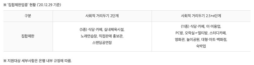 • 『집합제한업종 임차 소상공인 특별지원 프로그램』 : 1천만원 (5백만원 단위로 취급