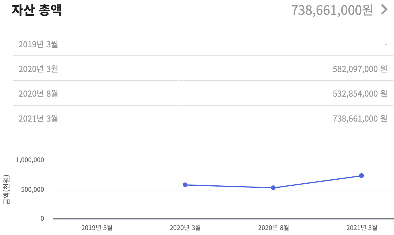 2021년 3월 기준 7억 3866만 1천원을 신고했다. 이는 전년도 대비 1억 5500만원 가량 증가한 금액이다.