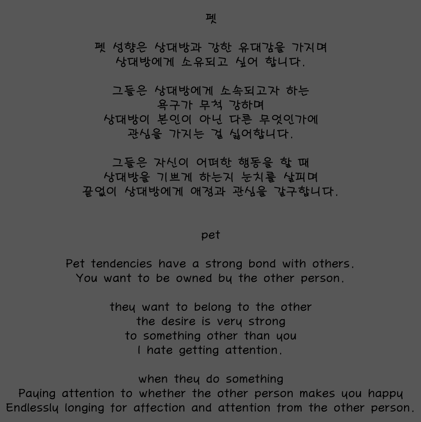 펫 성향은 상대방과 강한 유대감을 형성하길 원합니다.
