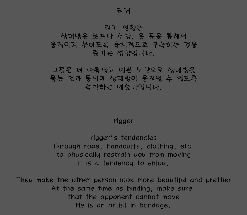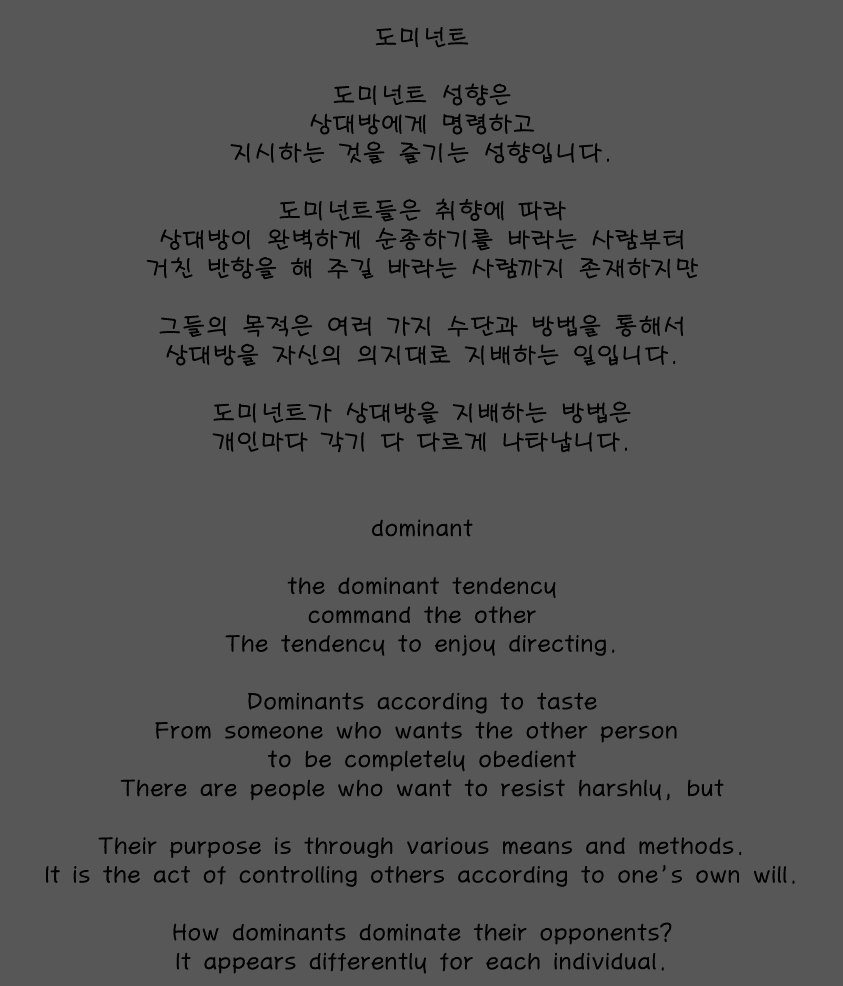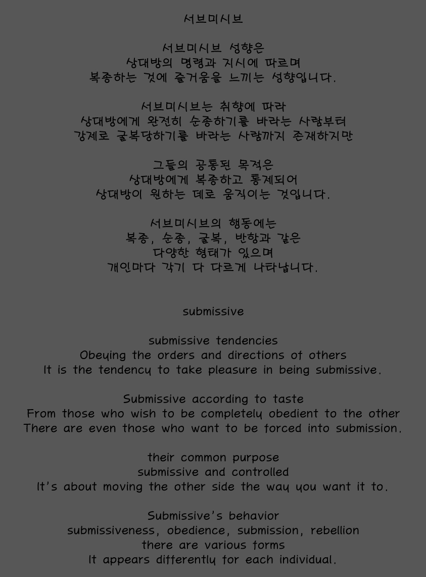 BDSM 성향 테스트를 진행하면서 자신의 성향을 확인했을겁니다. 테스트 이후에 나와있는 성향 해설을 찾으시는 분들이 많아서 따로 정리해서 올립니다.