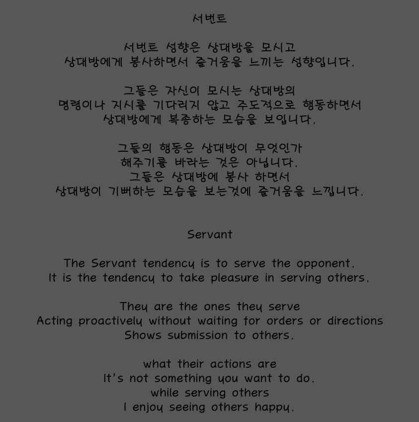 각 성향에 대한 자세한 정보는 아래 [더보기]에서 확인할 수 있습니다.