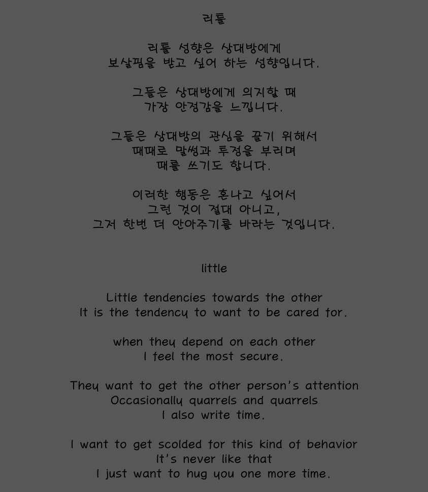 리틀 성향은 보살핌을 갈구하는 타입입니다.