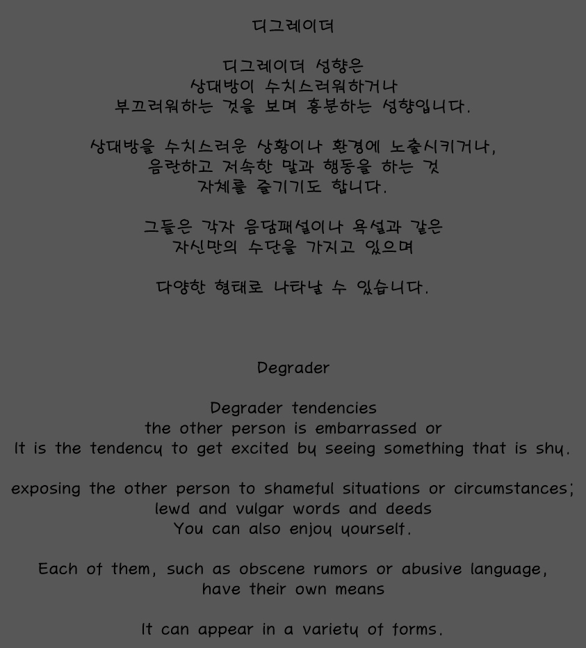디그레이디 성향은 자신이 수치스럽게 되는 상황에서 흥분합니다.