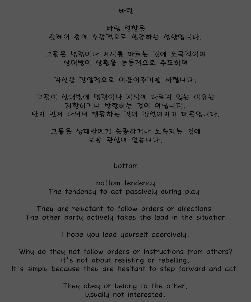 바텀 성향은 수동적으로 행동하는 사람들을 말합니다.