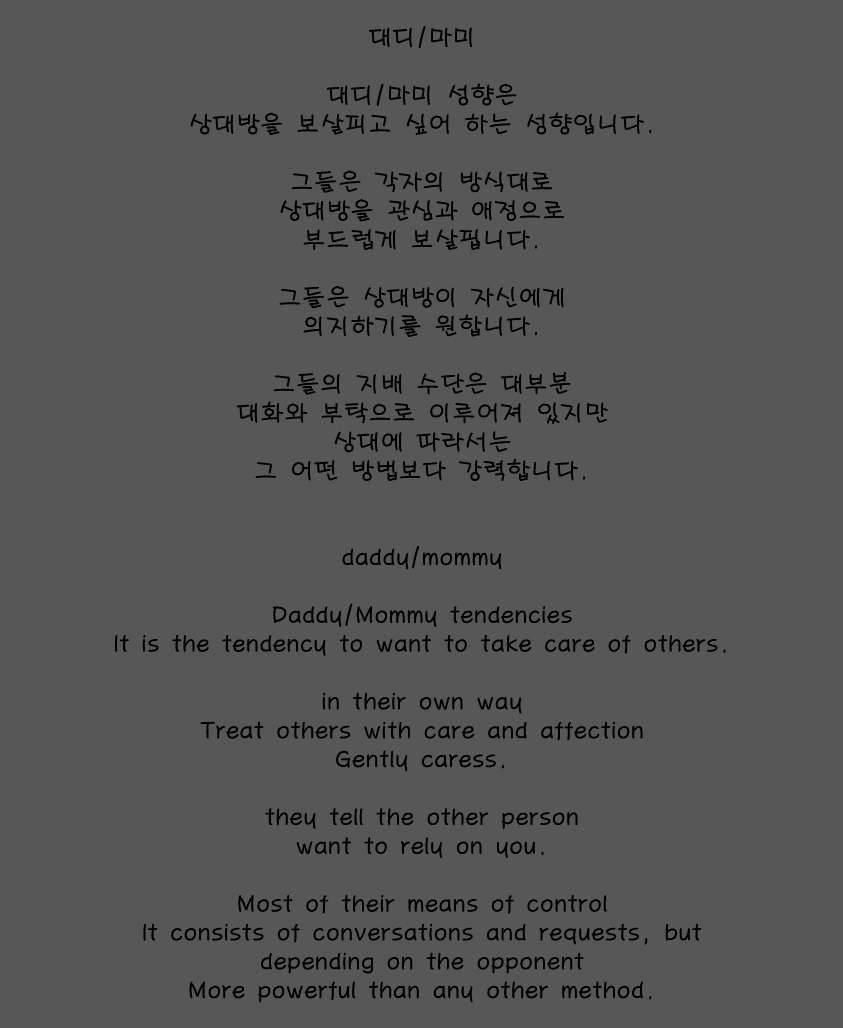 대대/마미 성향은 파트너를 보살피고 싶어하는 성향입니다.