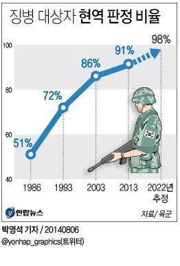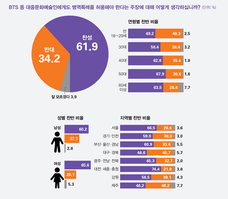 BTS 병역특례에 대한 여론조사 및 현역 징집률