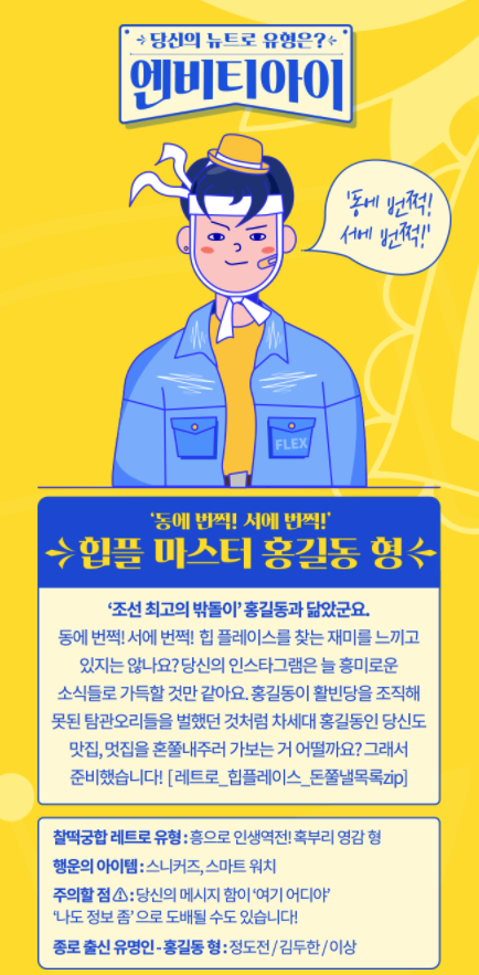 그리고 찰떡궁합 레트로 유형도 나옵니다. 연인이나 친한 친구랑 같이 해보는 것도 좋을 것 같습니다!