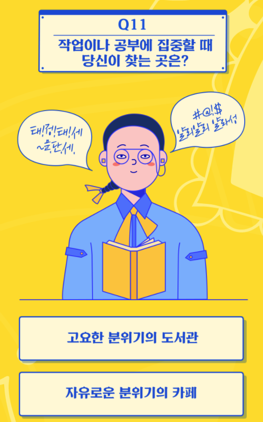 11. 작업이나 공부에 집중할 때 당신이 찾는 곳은?