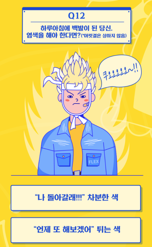 12. 하루아침에 백발이 된 당신. 염색을 해야 한다면?(*머릿결은 상하지 않음)