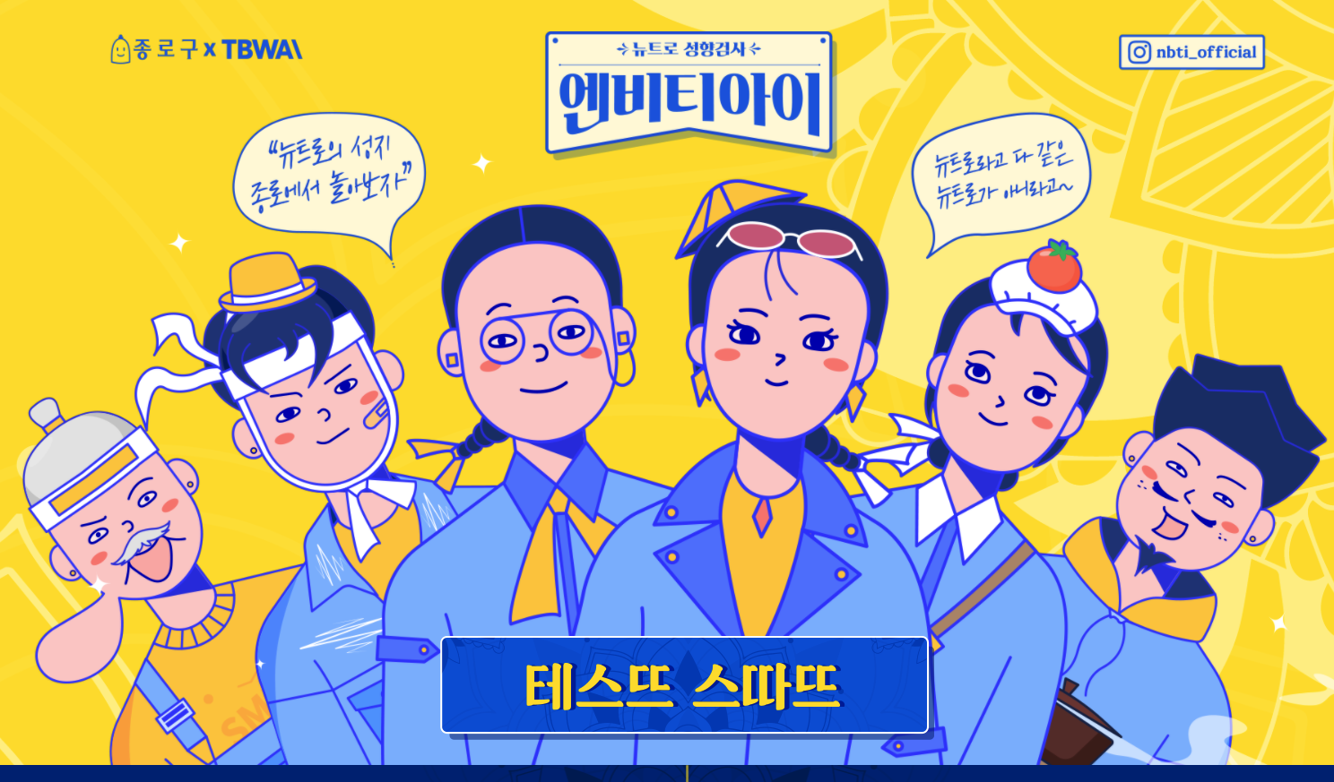 MBTI 성격유형검사는 모두 해보셨죠? 오늘은 NBTI 테스트라고 불리는 뉴트로 성향검사를 소개하려고 합니다. NBTI는 Newtro Best Type Indicator를 줄임말입니다. 뉴트로는 다들 아시죠?? 복고(New)를 새롭게(New) 즐기는 경향을 말해요! 을지로의 뒷골목이 힙지로로 불리는 것, 익선동의 한옥이 식당이나 카페로 재탄생하는 것들이 모두 뉴트로라고 볼 수 있습니다. NBTI 테스트를 통해 나는 뉴트로 음식을 즐기는지, 아니면 공간이나 패션을 즐기는 사람인지 알아봐요! [NBTI 테스트 바로가기 링크]는 포스팅 하단에 걸어둘게요!