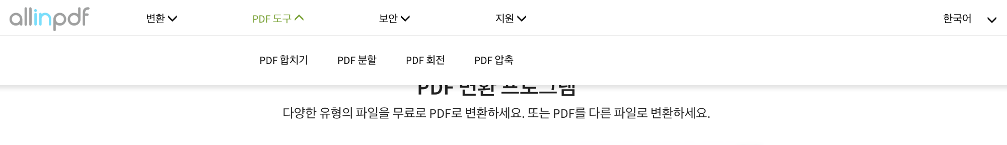 또한 word, hwp, gif, jpg등 대부분의 파일 형식으로 변환이 가능하다. 또한 PDF 도구를 활용하면 PDF 합치기, PDF 분할, PDF 회전, PDF 압축도 할 수 있다.
